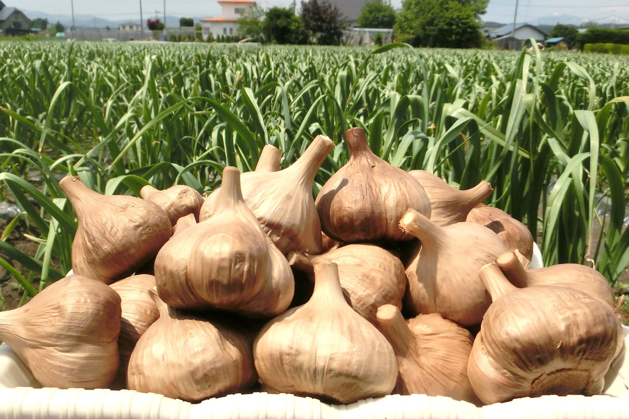 青森県十和田市は奥入瀬川や多くの河川が豊かな土壌を育み多種類の野菜作りが盛んに行われていますが、その中でも「にんにく/青森県産福地ホワイト六片種」は生産量日本一を誇ります。JA十和田おいらせが推奨している「中嶋農法」に学ぶ健康な土づくりから野菜本来の旨みが引き出され、ミネラル分豊富なより安全で健康的なにんにくが生産されているため、当社のにんにく関連商品の原料は、JA十和田おいらせから仕入れをしております。