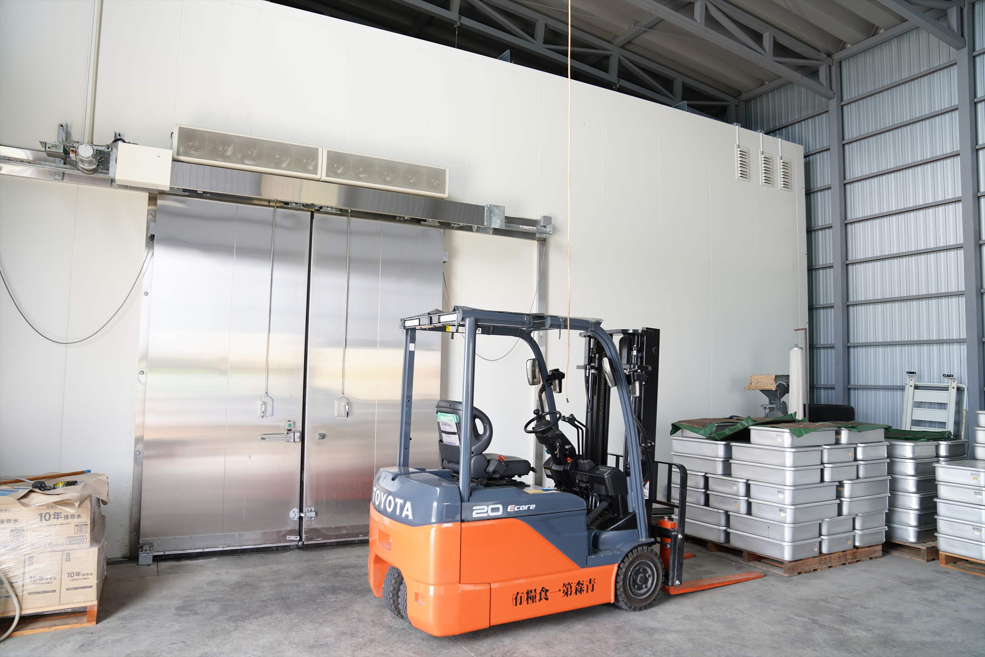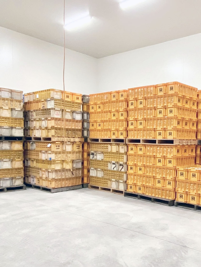 仕入れたにんにくを-2℃の専用冷蔵庫に保管しています。庫内は、適切な温度と湿度にてコントロールされているため、通年、安心・安全ににんにくを保管することが可能となっています。