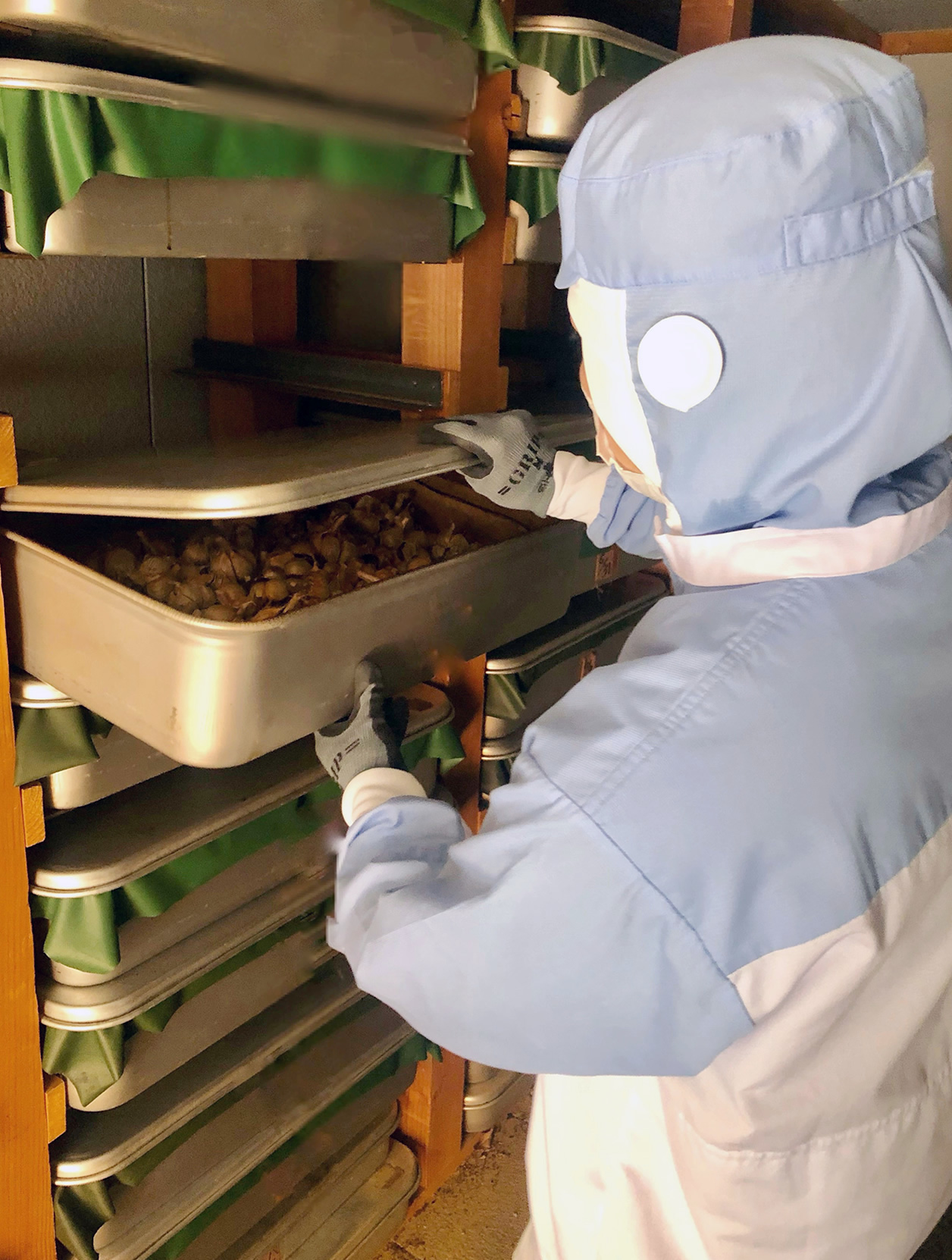そこで青森県産にんにくを約1ケ月間、高温・多湿のもとで熟成させます。